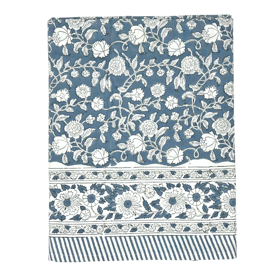 This tablecloth was hand block printed in Jaipur, India. Please note that small irregularities are inherent in the manufacturing process and are not considered to be flaws.