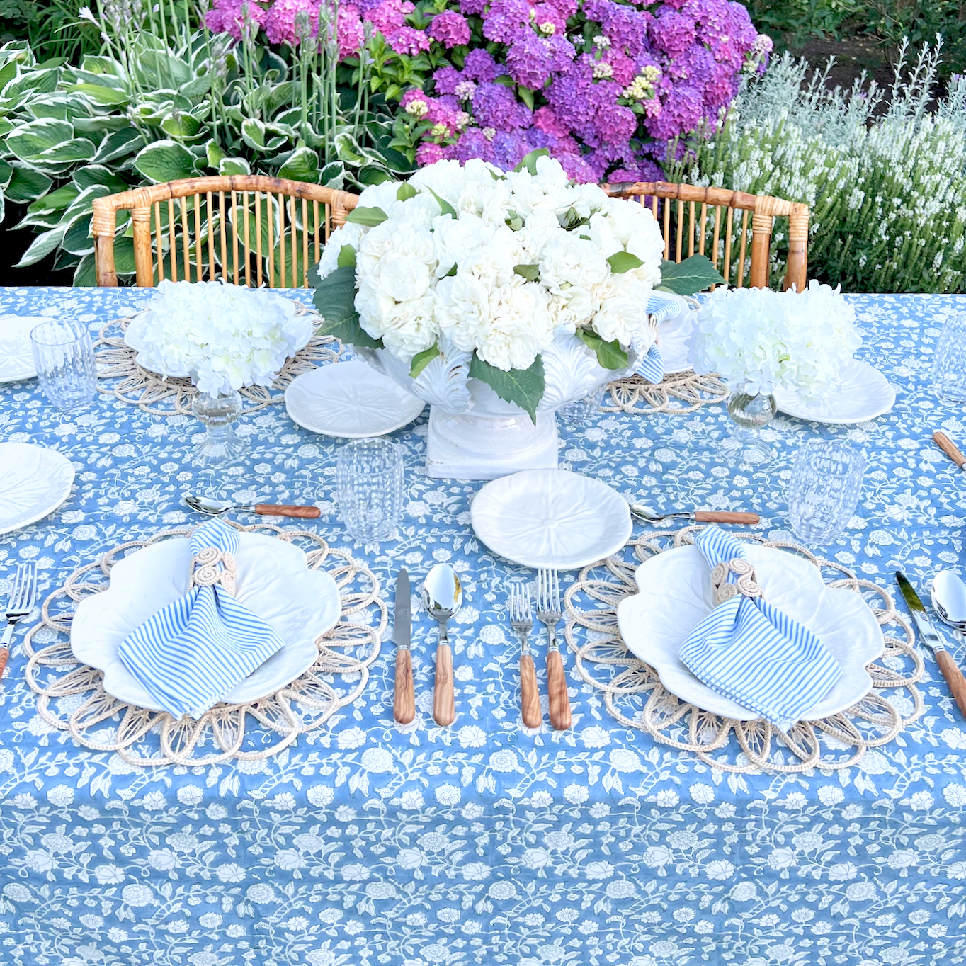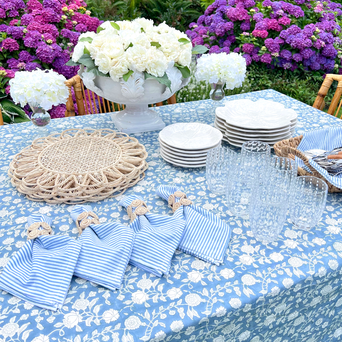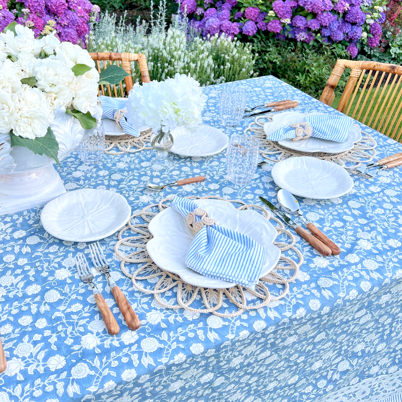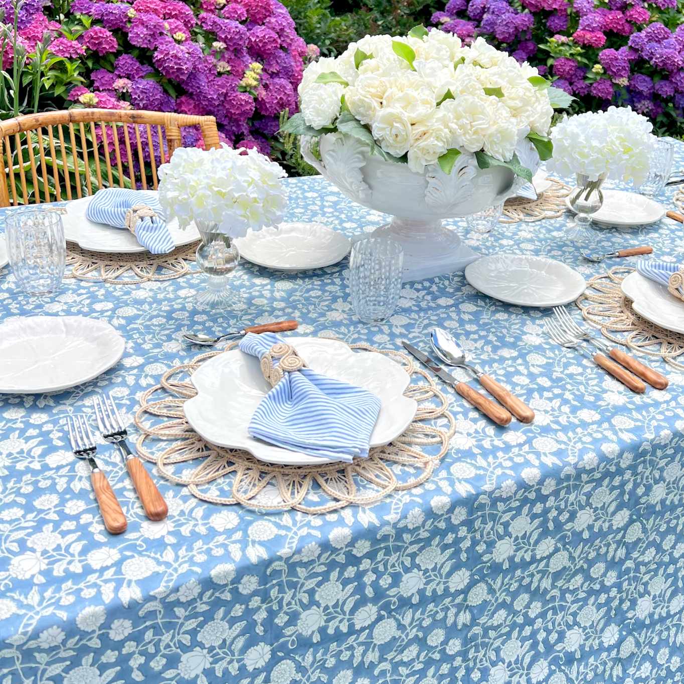 Our Jardin Tablecloth in French Blue makes for a serene and timeless table.