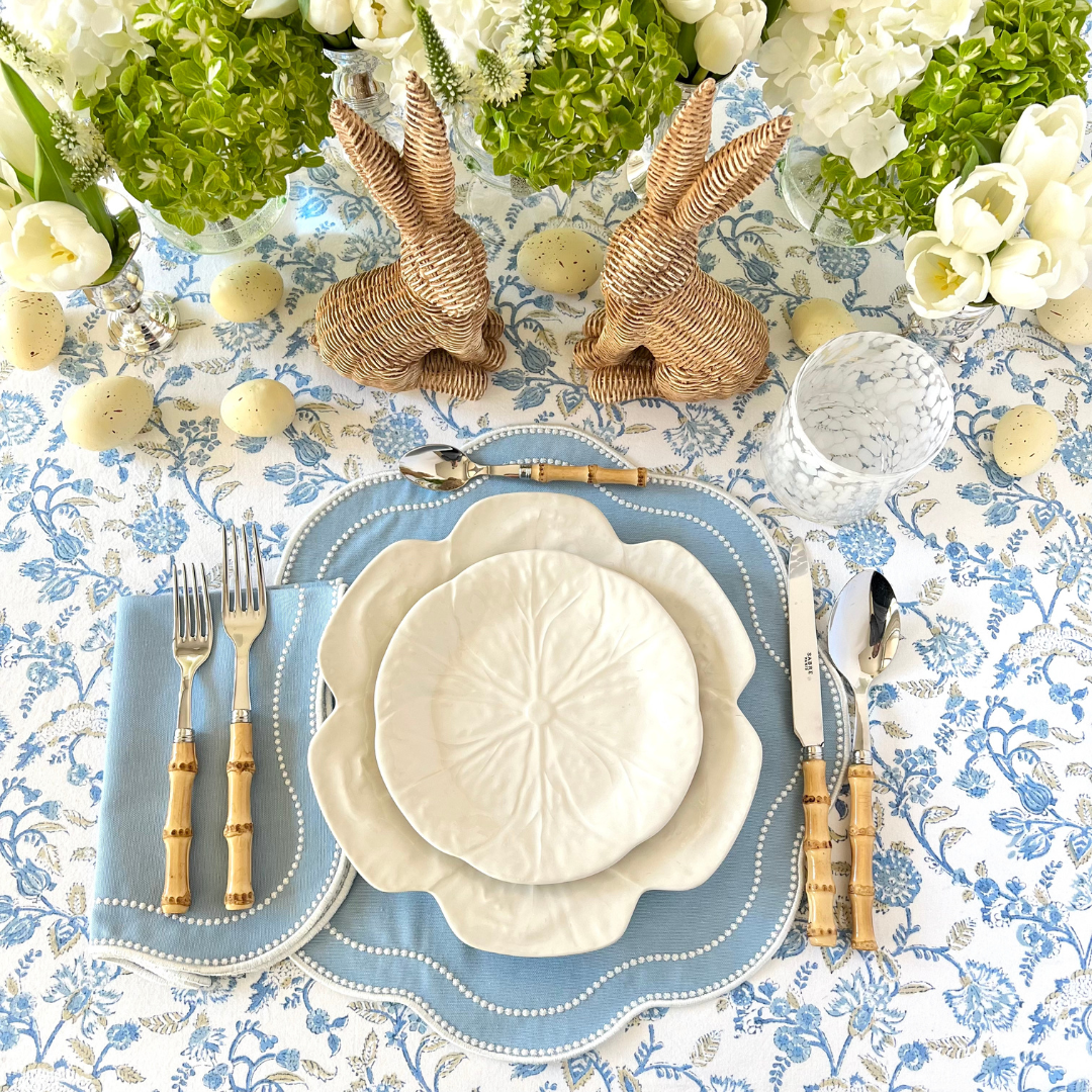 Block print tablecloth blue tablecloth easter tablecloth katherine young home tablescapes